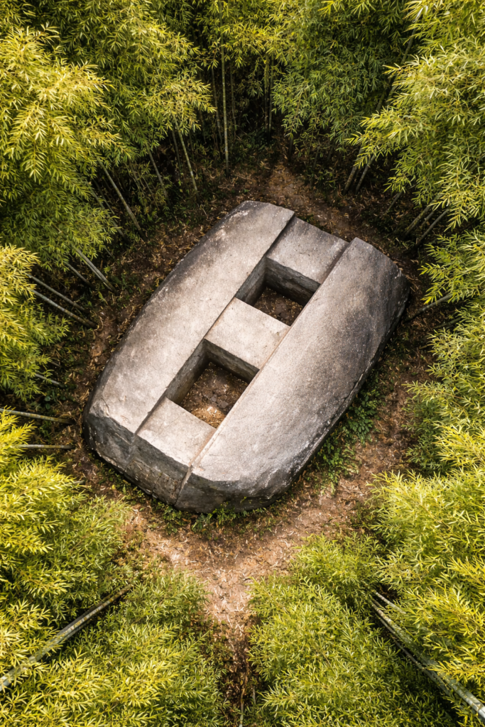 山の上にあり、重さ約800トンの岩に直線的な溝が刻まれています。