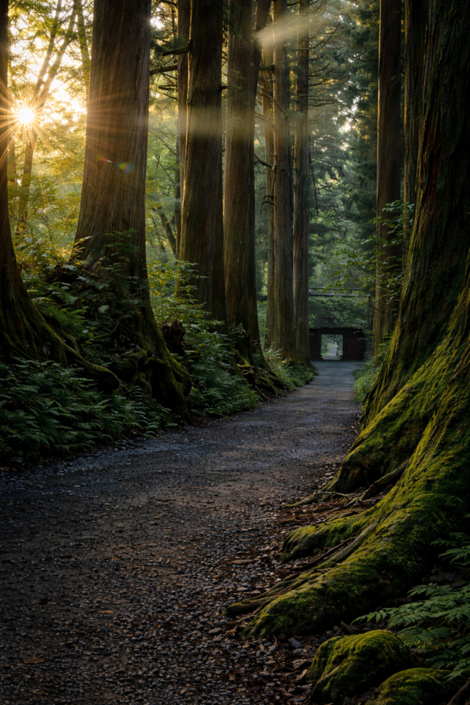 奥社へ続く杉並木は「神の道」とも呼ばれ、